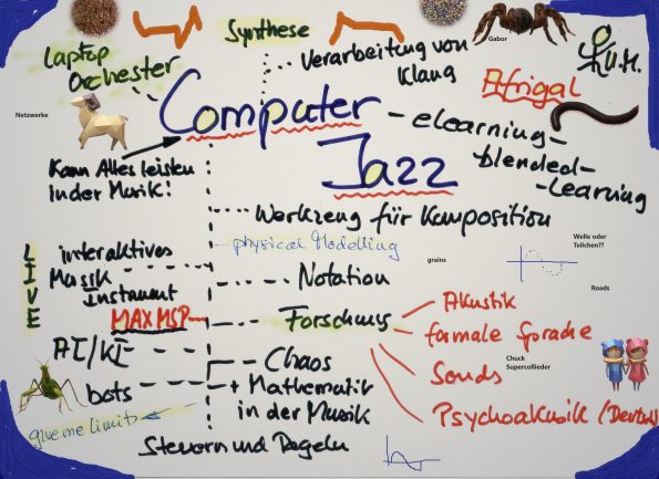 hat mich über meine Ausbildung schon immer bewegt und angesprochen, genauso wie mathrock, freie improvisation (Komplexitätstheorie und Chaosforschung), das Art Ensemble und natürlich. https://www.youtube.com/watch?v=8m-KlgF48mU Blues. Blues ist alles, denke ich!! 😉 🙂Chuck, Programming on the Fly, Hardwareansprache,Pure Data, Max, Ableton, parallel Processing,Musik Ästhetik, interaktive Verwendung neuer Medien, Klang und das Malen mit Klängen, Neue Musik usw. usw. s.a. unter ElectronicUnendliches SpielDEGEM Ohne ihn gäbe es diesen Bereich in der Schweiz wahrscheinlich gar nicht. Bruno SpörriAmbient JAZZ – Variante der elektronischen Musik Eigene Versuche Unsere westliche Kunstmusik hat der Benediktinermönch Guido von Arezzo wesentlich beeinflusst mit der Erfindung der Notenschrift in einem Terzsystem. Wegen Anfeindnungen musste er damals das Kloster verlassen. Er hatte ja die mündliche Tradition der Überlieferung von Gregorianischen Chorälen, also eine Geheimwissenschaft untergraben. Unsere digitale Revolution lässt sich hier gut vergleichen. Heute wie damals bildet sich ein neues Medium der Komposition aus.