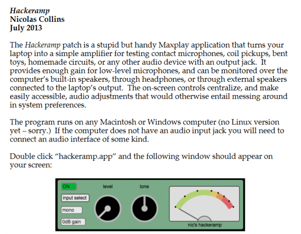 4See Collins 2009. Handmade Electronic Music: The Art of Hardware Hacking. Second. New York and London: Routledge, p 297.