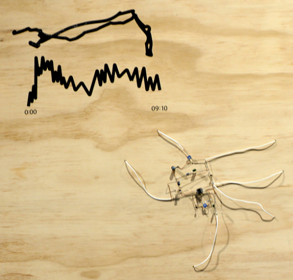 10In physics, „jerk“ is the third derivative of displacement with respect to time, which can also be thought of as the time-derivative of acceleration (Sprott, Julien Clinton. 2011. “A New Chaotic Jerk Circuit.” IEEE Transactions on Circuits and Systems II: Express Briefs 58 (4): 240–243). Incidentally, Sprott co-authored paper on these type of chaotic oscillator circuits with Jessica Rylan-Piper, mentioned below: Piper, Jessica Rylan, and Julien Clinton Sprott. 2010. “Simple Autonomous Chaotic Circuits.” Circuits and Systems II: Express Briefs, IEEE Transactions On 57 (9): 730–34.