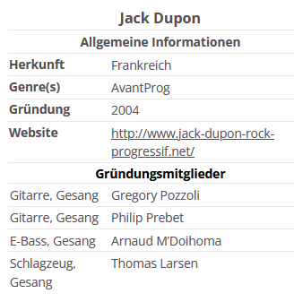 Jack Dupon sehen ihren experimentellen Stil in der Tradition der Rock-in-Opposition-Bewegung und bewegen sich zwischen Progressive Rock, Zeuhl, Punk und Noise.