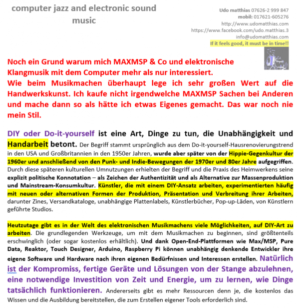 Ich bin ein selfmadeMusiker und bin in der Domäne Musik nicht mit einer Hochschulequalifikation begränzt.