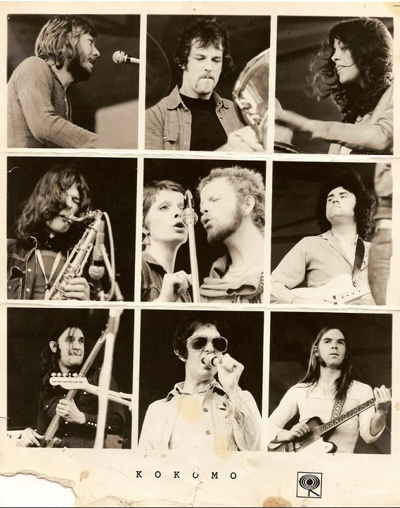 Formed in May 1973 by Tony O’Malley and Terry Stannard, ex-members of the pop group Arrival, Kokomo’s ten-piece line-up became: Dyan Birch (vocals), Frank Collins (vocals), Paddy McHugh (vocals), Tony O’Malley (keyboards, vocals), Alan Spenner (bass, vocals), Neil Hubbard (guitar), Mel Collins (saxophone), Jody Linscott (percussion), Terry Stannard (drums) and Jim Mullen (guitar). Spenner and Hubbard were from the Grease Band, Birch, McHugh, Collins and O’Malley from Arrival and Mel Collins from King Crimson. Kokomo’s first performance was at The Pheasantry, King’s Road, Chelsea in 1973, where the band’s roadie Franky Blackwell, coined the band’s name. Kokomo built an early reputation in the UK pub rock scene. Linscott joined when the band played at Dingwalls and she performed with them whilst working there as a waitress.