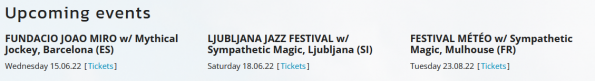 Zu den jüngsten Veröffentlichungen gehören:Solos Nsular, Ductus; XT Deorlaf X, Palina’Tufa; Creaking Breeze Ensemble & Nathaniel Mackey Fugitive Equation; F.R.David sehr gut*; RP Boo Trio 31.12.18.