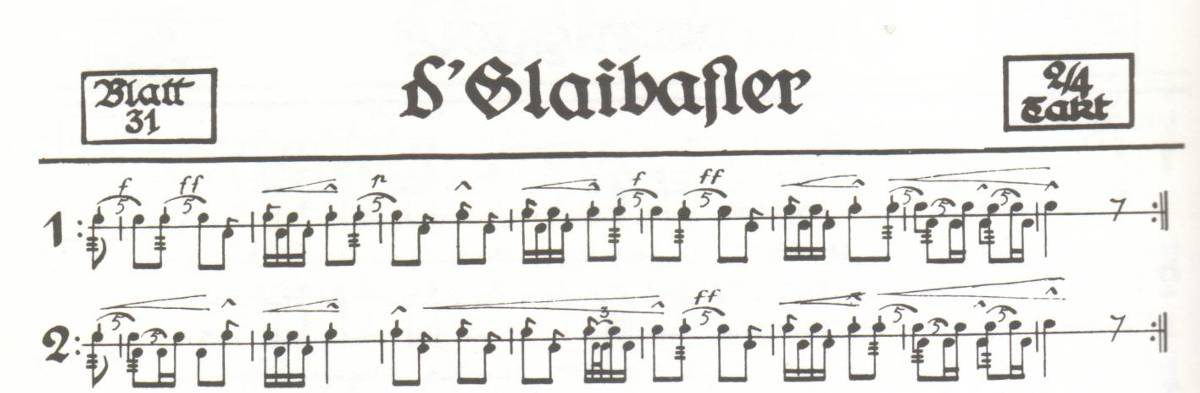 Die heute am meisten angewendete Trommelnotenschrift der Schweizer Tambouren
