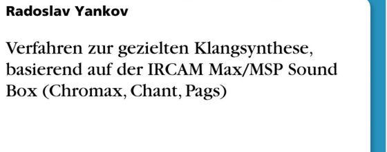 • Unterricht MAXMSP Chuck JAVA Assembler C+- Ableton Live